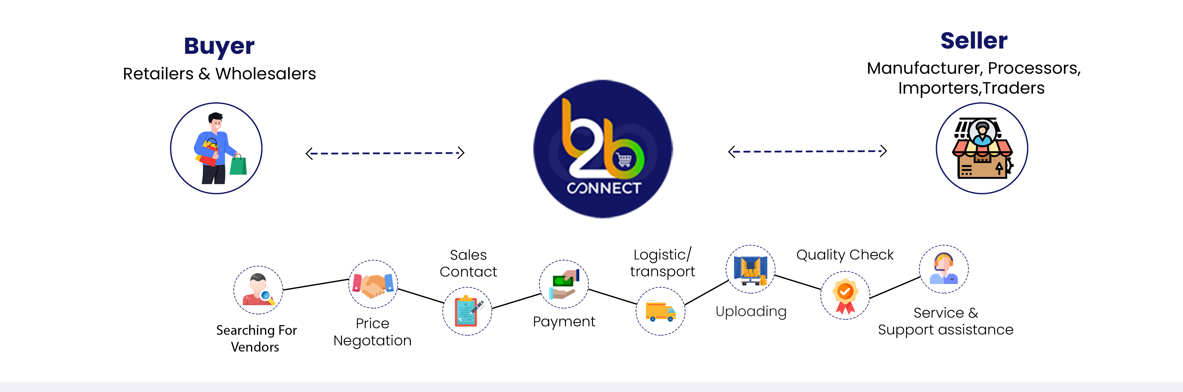 We have created a complete digital platform for Buyers and Sellers; it has a hassle-free trade e-marketplace to buying and selling. Logistics, quality inspections, secure payments, and returns handled by B to B Connect. We are introducing technology to improve the traceability and sustainability.